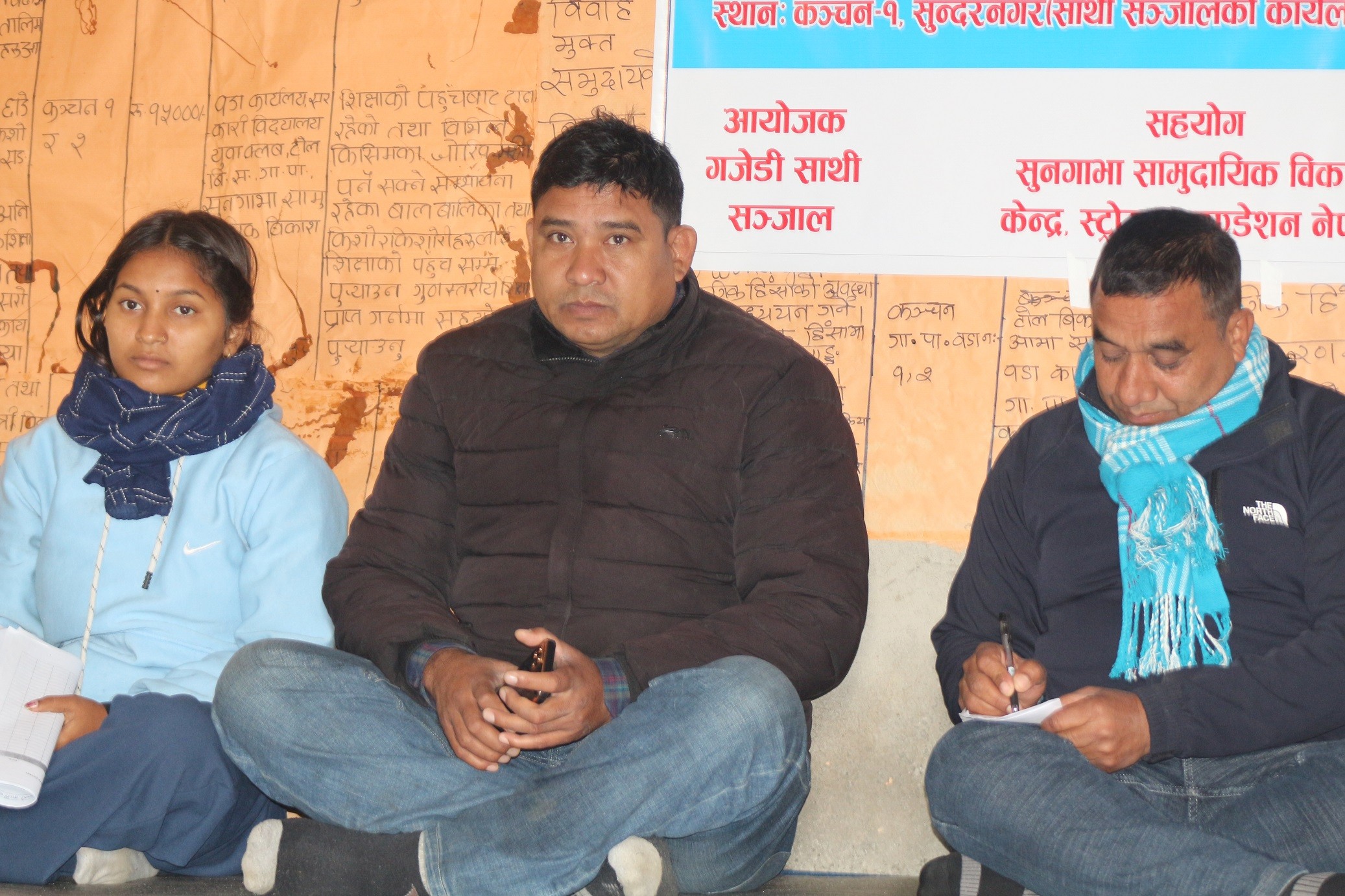 साधारण सभामा सञ्जालका अध्यक्ष सुस्मिता नोपलीले सञ्जाल मार्फत बर्ष भरि सञ्चालन गरिने बार्षिक कार्यक्रमको बारेमा सहजिकरण गरी कार्ययोजना निर्माणका लागि आवस्यक सुझाव संकलन गर्नु भएको थियो। सञ्जालकी उपाध्यक्ष उषा सुनारको अध्यक्षतामा भएको साधारण सभामा हरिकला परियार, जोसना पुन, भुमा थारु, दिवस बुचा मगर, कृष्णा थारु लगायतले बार्षिक कार्ययोजना निर्माणका लागि छलफलमा भाग लिएका थिए । कञ्चन १ स्थित सुन्दरनगर टोलमा रहेको गजेडी साथी सञ्जालको कार्यलयमा सम्पन्न कार्यक्रममा सञ्जालकी सदस्य भुमा थारुको स्वागत तथा सचिव गिता भुजेलले कार्यक्रम सञ्चालन गर्नु भएको थियो । सुनगाभा सामुदायिक बिकास केन्द्र, कञ्चन ४ रुपन्देही र स्ट्रोम फाउण्डेसनको आर्थिक सहयोगमा सम्पन्न कार्यक्रममा उपाध्यक्ष उषा सुनारले सञ्जालको बार्षिक प्रगती प्रतिवेदन प्रस्तुत गर्नु भएको थियो।