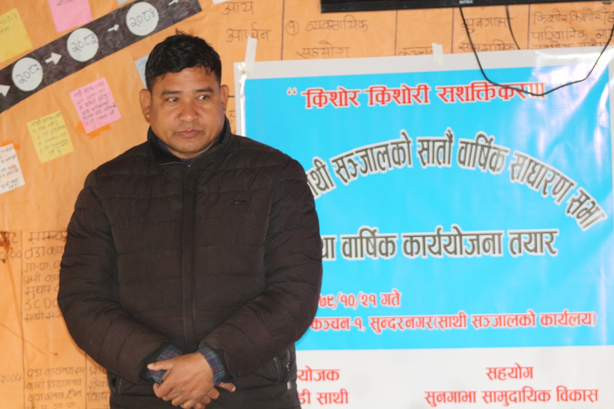 साधारण सभामा किशोर किशोरीहरुलाई मार्गनिर्देशन दिदै कञ्चन गाउपालिका वडा नं. १ का वडा अध्यक्ष हरि नारायण थारुले गाउँ गाउँमा किशोर किशोरीहरुलाई आफ्नो हक अधिकारका लागि न्यायोचित संघर्ष गर्न सञ्चालन हुने सम्वाद समूहले किशोर किशोरीहरुको व्यक्तित्व विकासमा सहयोग पुराउदै आएको बताउनु भएको छ। समाजमा हुने बाल विवाह, यौन तथा लैंगिक हिंसा, मानव अधिकार तथा मानसिक स्वास्थ्य समबन्धी सचेतनामुलक कार्यक्रम सञ्चालन गरेर साथी सञ्जालले समतामुलक समाज निर्माण गर्न प्रयत्नशिल भइरहेको वडा अध्यक्ष थारुले उल्लेख गर्नु भयो।