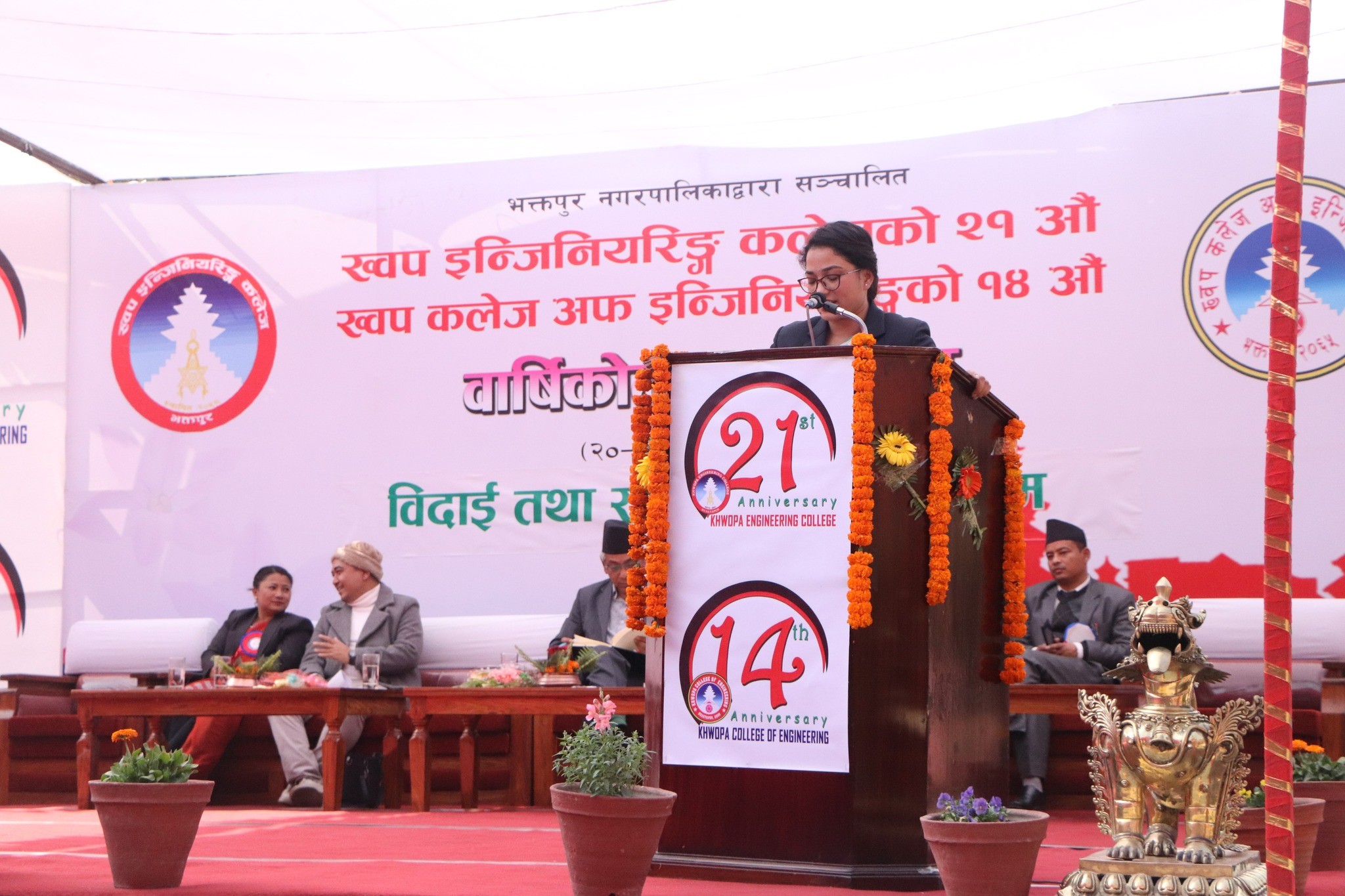 भक्तपुर नगरपालिकाद्वारा सञ्चालित ख्वप इन्जिनियरिड्ड कलेजको २१ औं र ख्वप कलेज अफ इन्जिनियरिड्डको १४ औं बार्षिकोत्सव समारोहको विदाई तथा सांस्कृतिक कार्यक्रममा नेपाल मजदुर किसान पार्टीका केन्द्रीय सचिव तथा प्रतिनीधि सभा सदस्य श्री प्रेम सुवालको प्रमख आतिथ्यमा शनिबार सम्पन्न भयो ।