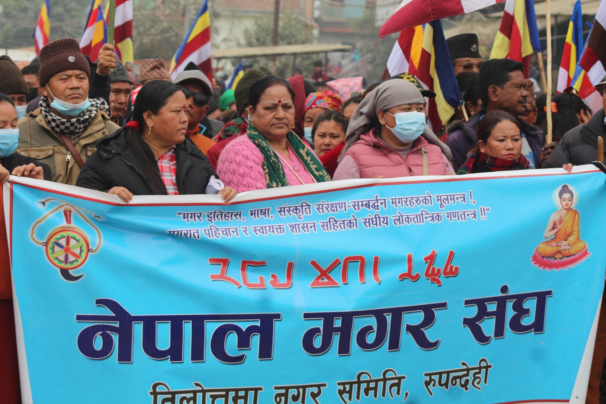 शान्तीपुर्ण र्यालीमा सहभागी हुन रुपन्देहीको बुटवल, भैरहवा, तिलोत्तमा, कञ्चन, देवदह, कपिलबस्तु, नवपरासी र दांगबाट समेत बौद्धमार्गीहरु लुम्बिनी आएका थिए। नेपाल मगर बौद्ध सेवा समाज लुम्बिनीका अध्यक्ष तथा बौद्धमार्गी संयुक्त संघर्ष समितिका अध्यक्ष पार्वती घर्ति मगरको नेतृत्वमा भएको बिरोध र्यालीमा थारु बौद्ध सेवा समाज, नेपाल आदीवसी जनजाती महासंघ रुपन्देही, नेपाल मगर संघ, रुपन्देही, तमु ह्युल छोंज धी, धर्मोदया सभा लगायत बिभिन्न बुद्ध गुम्बा तथा बिहार व्यबस्थापन समिति र बौद्धमार्गीहरुको सहभागिता रहेको थियो।