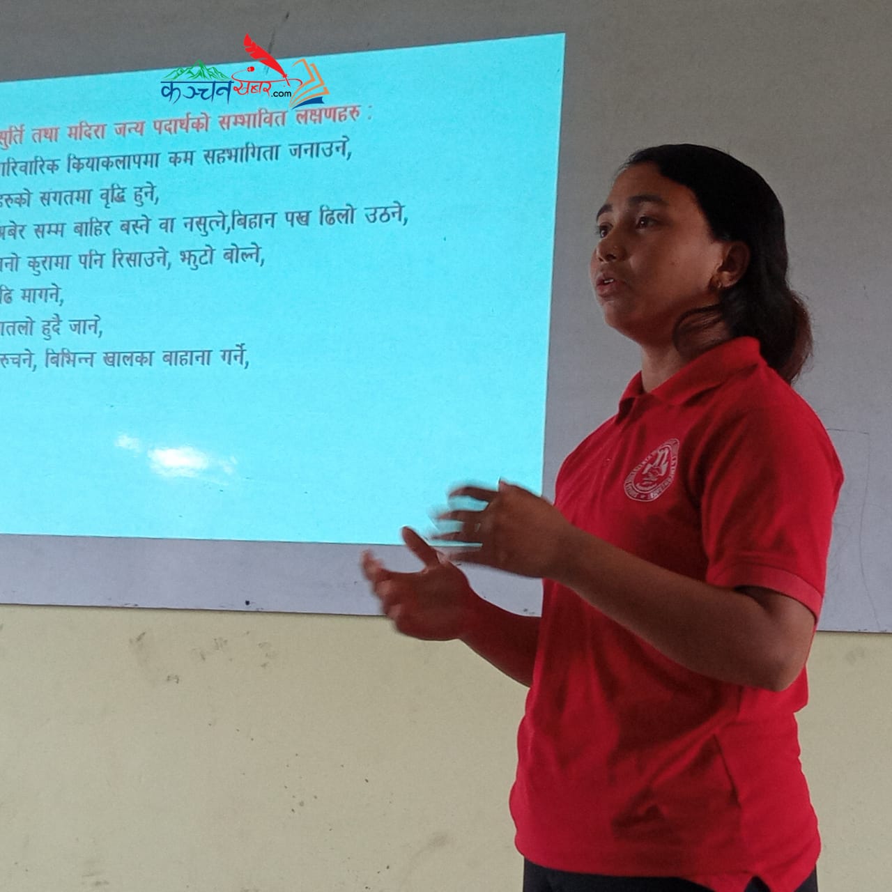 कार्यक्रममा वडा नं. १ का वडा अध्यक्ष तथा कार्यक्रमका प्रमुख अतिथि हरि नारयण थारुले अवका किशोर किशोरीहरुलाई समाज रुपान्तरणको संवाहक बनाउन अभिभावक र समाजका अगुवाहरुबाटै सुर्ति जन्य पदार्थ तथा मदिरा जन्य पदार्थको सेवन गर्दा बालबालिकाहरुले देख्ने गरी प्रयोग नगर्ने बानीको बिकास गर्न आवस्यक रहेको बताउनु भयो।
