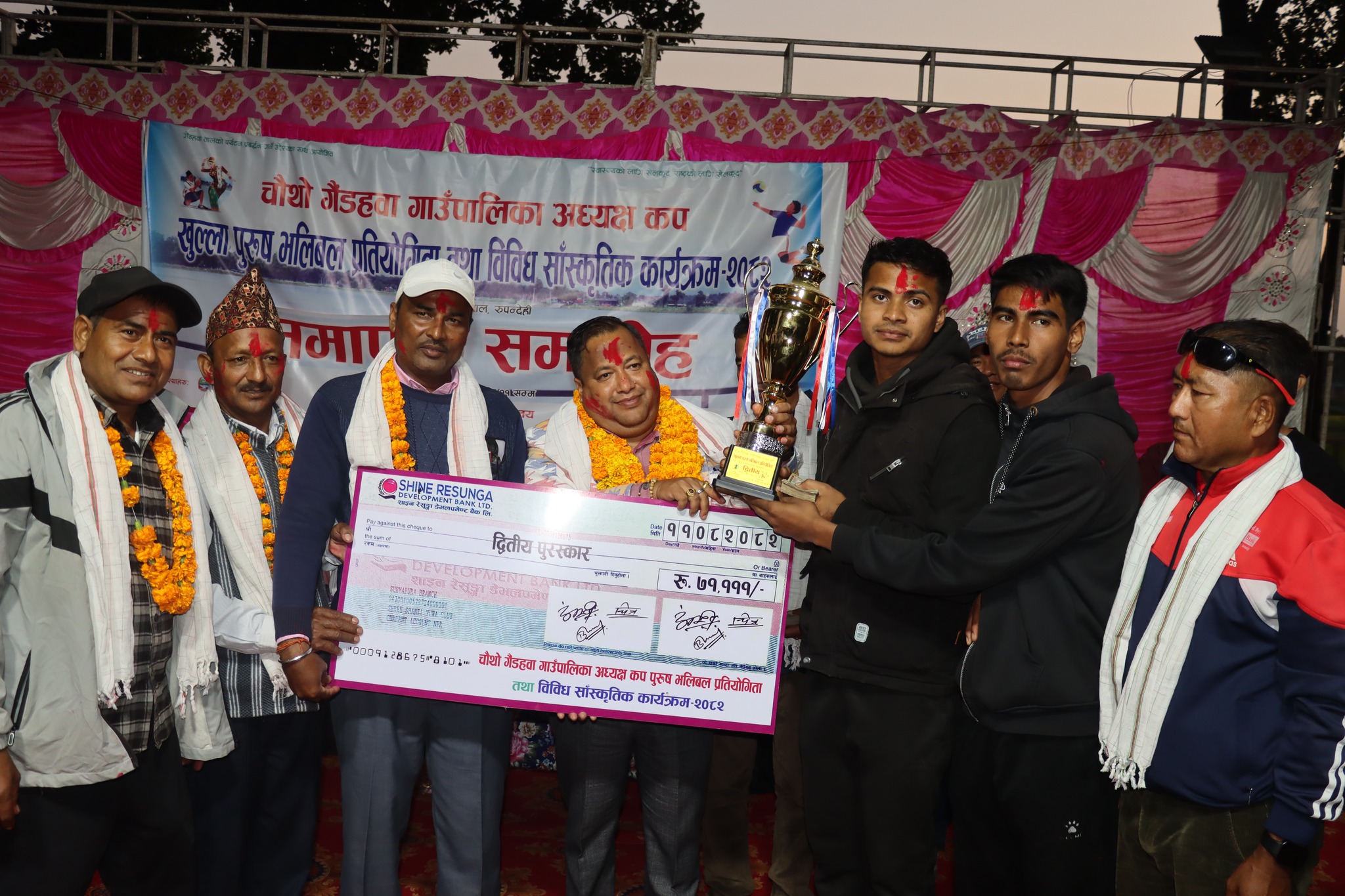 कार्यक्रममा वडा नं. ४ का वडा सदस्य तुल बहादुर बि.क.ले स्वागत गर्दै आफुसंग महंगो गहना भएको तर कहाँ कतिवेला कसरी प्रयोग गर्ने भन्नेबारेको ज्ञान, सोंच, योजना र समन्वय हुन नसक्दा रुपन्देहीको एकमात्र मानव निर्मित सबैभन्दा ठूलो ताल गैडातालको पर्यटन प्रबर्द्धन हुन नसकिरहेको अवस्थामा भलिवल प्रतियोगिताले केही सार्थकता दिने विश्वास व्यक्त गर्नुभयो। प्रतियोगितामा पाल्पा, कपिलबस्तु, नवपरासी, रुपन्देही, स्याङ्गजाका गरी ११ भलिवल टिमहरुले सहभागिता जनाएका थिए ।