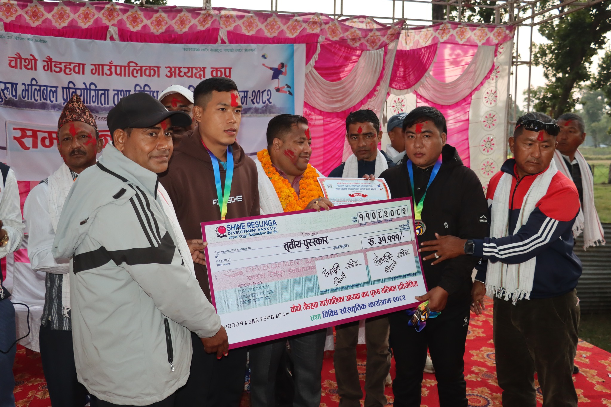 यसैगरी प्रतियोगितामा तेश्रो भएको स्याङ्गजा भलिवल क्लवले नगद ३१ हजार १ सय १ज्ञ रुपैया सहित कप, मेडल र प्रमाण पत्र प्राप्त गर्न सफल भएको छ भने सान्त्वना भएको मणिमुकुण्ड भलिवल क्लव रातोले २१ हजार १ सय ११ रुपैया प्राप्त गरेको छ।