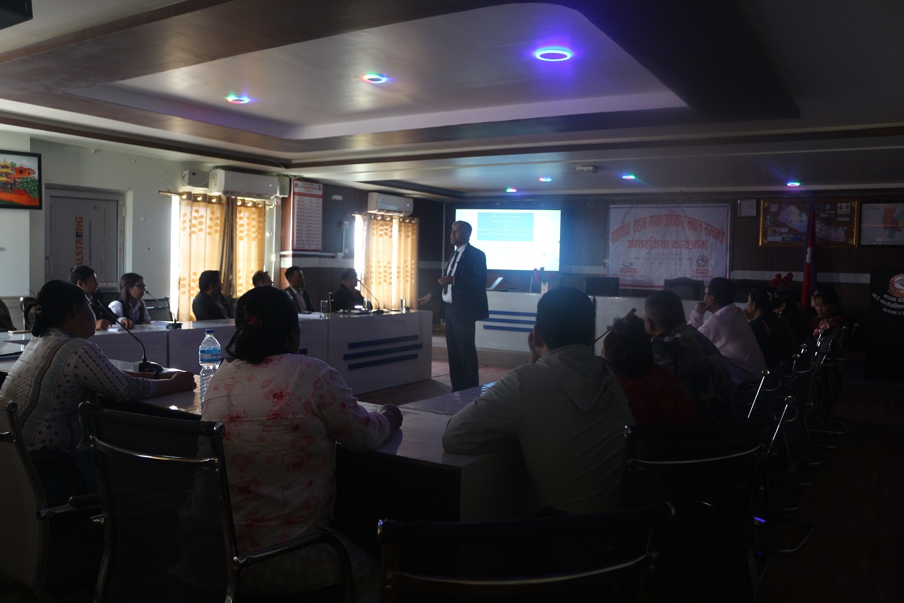 राष्ट्रिय मानव अधिकार आयोग, लुम्बिनी प्रदेश कार्यलय बुटवलका सह सचिव तथा कार्यलय प्रमुख सन्तोष आचार्यले मानव अधिकार र राष्ट्रिय मानव अधिकार आयोग, राष्ट्रिय मानव अधिकार आयोगको काम, कर्तब्य, जिम्मेवारी, दायित्व, मानव अधिकार उल्लङ्घन, उजुरी, कारवाही तथा क्षतिपूर्ति, मानव अधिकारसम्बबन्धी अन्तराष्ट्रि दस्तावेजहरु, विश्वव्यापी घोषणापत्र, वडापत्र, महासन्धीसम्बन्धी जानकारी गराउनु भएको थियो। स्थानीय तहले आफ्नो वार्षिक कार्ययोजना निर्माण गर्दा मानव अधिकार मैत्री र स्थानीय तहका नागरिकहरुले समेत मानव अधिकार सुनिश्चित भएको अनुभूत गर्न योजना निर्माण जस्ता बिषयहरुमा सहजिकरण गर्दै सहसचिव आचार्यले स्थानीय तहमा हुने मानव अधिकार उल्लङ्घन सम्बन्धी कार्यहरुको अनुगमन र पिडितहरुलाई न्यायिक सेवा प्रदान गर्दासमेत मानव अधिकारको न्युनतम मापदण्डको अधिक्तम उपयोगबारे जानकारी दिनु भएको थियो।