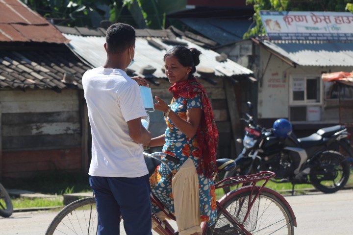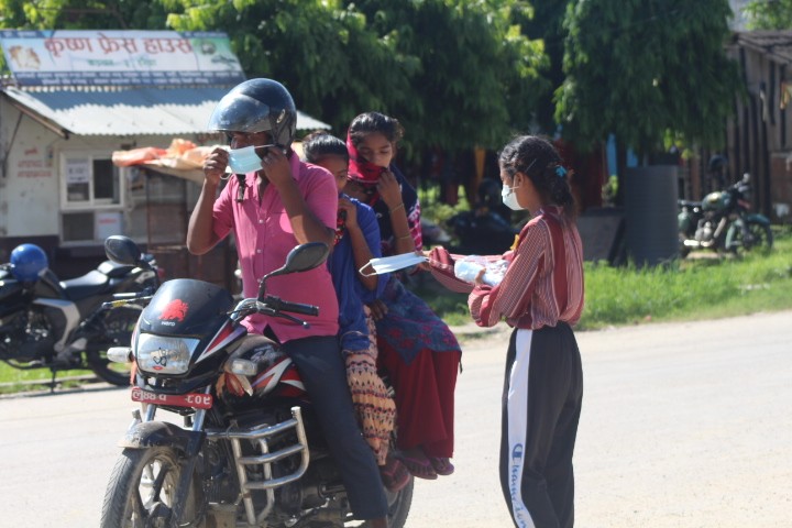 सुनगाभा सामुदायिक बिकास केन्द्र,कञ्चन४,रुपन्देही र स्ट्रोम फाउण्डेसन नेपालको सहयोगमा मास्क नलगाई यात्रा तथा बजार गर्ने स्थानियहरुलाई कोभिड १९ बाट सुरक्षित हुन मास्क लगाउन आग्रह गर्दै मास्क लगाउने तरिका समेत सिकाइएको गजेडी साथी संजालका अध्यक्ष सुस्मिता नेपालीले जानकारी दिइन।