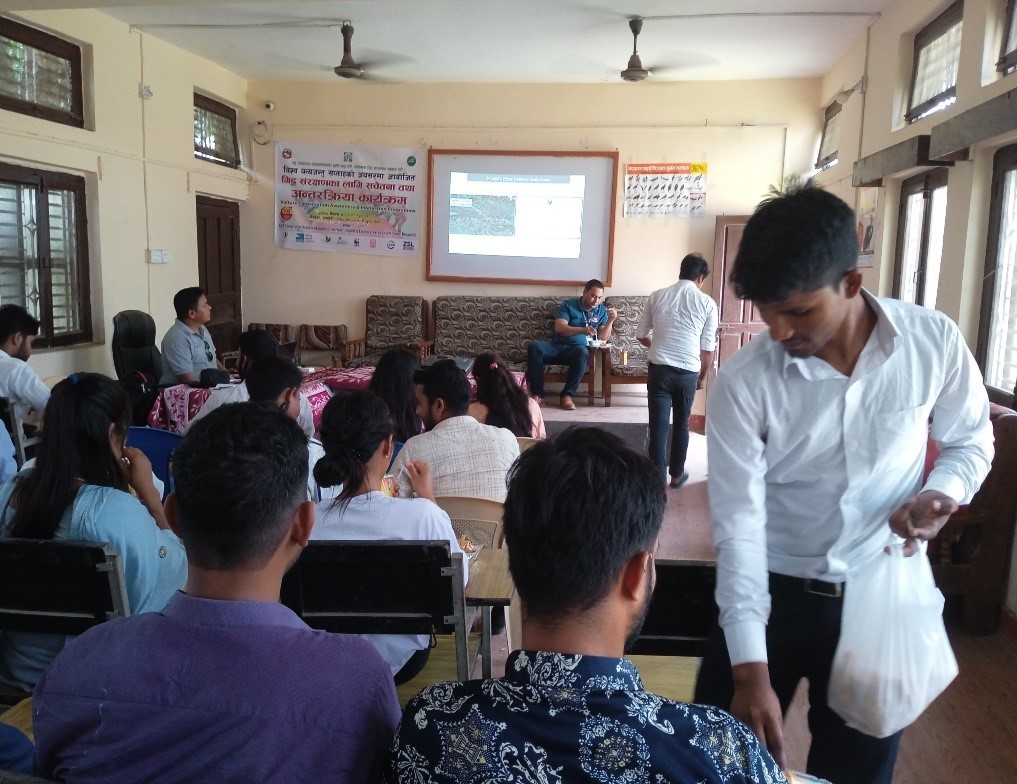 भेटेरीनरी अस्पताल तथा पशु सेवा विज्ञ केन्द्र भैरहवाका कार्यलय प्रमुख श्री दिपक भूसालको सभापतित्व तथा नेपाल पंन्छी संरक्षण संघका परियोजना अभिकृत श्री भूपाल नेपाललीको सहजिकरणमा सम्पन्न कार्यक्रमको संचालन पशु सेवा विज्ञ केन्द्रका प्राविधिक टुकराज न्यौपानेले गर्नु भएको थियो । बुधवार सम्पन्न कार्यक्रममा भेटेरीनरी अस्पताल तथा पशु सेवा विज्ञ केन्द्रका प्राविधिहरु, कर्मचारीहरु, पशु क्वारेनटाइन भैरहवा कार्यालय कर्मचारी तथा ओजिटिमा अध्ययनरत विद्यार्थीहरुको समेत सहभागिता रहेको थियो ।