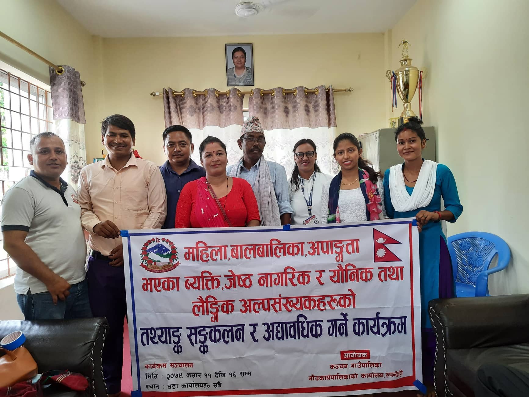 रुपन्देहीको कञ्चन गाउपालिकाको महिला तथा बालबालिका शाखाले गाउपालिकामा रहेका महिला बालबालिका,अपांगता भएका व्यक्ति,जेष्ठ नागरिक यौनिक तथा लैंगिक अल्पसंख्यकहरुको तथ्यांक संकलन गरेको छ। गत असार ११ गते देखि शुरु भएको तथ्यांक संकलन गर्दा गाउपालिकामा एक जना मात्र तेश्रो लिंगीको रुपमा पहिचान गरिएको छ।