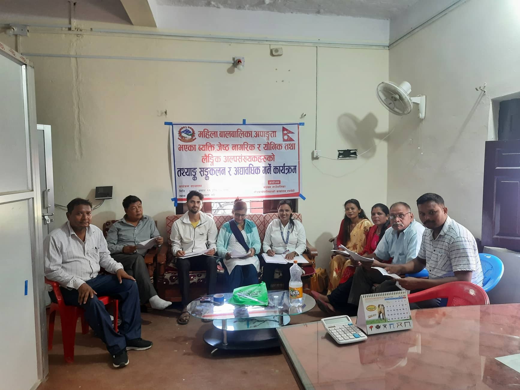 तथ्यांक संकलनको क्रममा वडा नं. ३ को कार्यालयका जनप्रतिनीधि तथा कर्मचारीहरुसंग निरीक्षक राधा भट्टराई