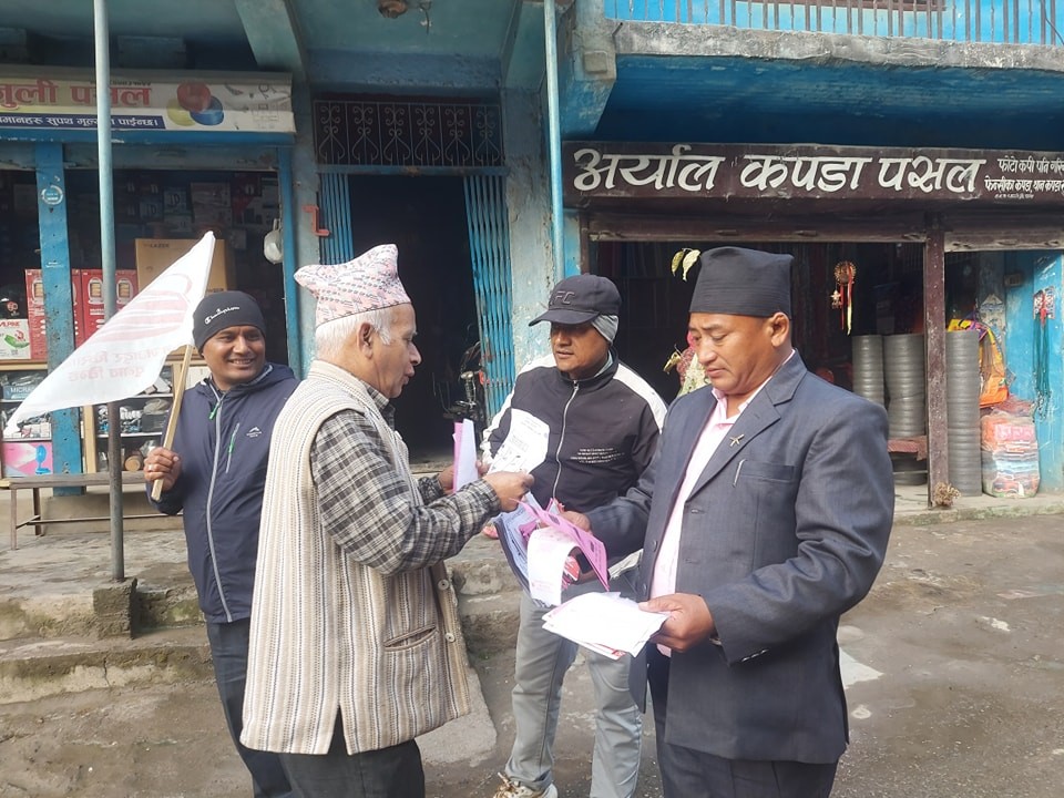 उमेद्वार धुख्वाले तान्सेन नगरपालिकाको बसपार्क, टुँडिखेल, असनटोल, भगवतीटोल, लहरेपिपल, टक्सारटोल, सितलपाटी, ऐतिहासिक दरवार क्षेत्र, क्याम्पसरोड, गोलघर लगायत स्थानहरुमा नेमकिपाको घोषणापत्र र आफ्नो प्रतिबद्धतापत्र सहितको अपिल वितरण गर्दै देशको सन्तुलित बिकास गर्न देशको कानुन नबदलेसम्म जुन व्यक्ति जहाँबाट चुनाव जितेर गएपनि जनताले सधै दुख पाइरहने भएकोले नेमकिपाले जनताको घर घरमा चुनाव प्रचार प्रसार गर्न आएको समेत स्पष्ट पार्नुभयो। देशलाई कृषिमा आत्म निर्भर बनाउन स्वदेशमै रासायनिक मल कारखाना स्थापना गर्न र देशको सीमा सुरक्षा र सार्वभौमिकता रक्षाको संघर्षलाई अगाडी बढाउन, महिलाहरुको श्रमशक्ती बढाउन स्थानीय तहको वडा र टोलटोलमा शिशुस्याहार केन्द्र तथा बालोद्यान स्थापना गर्न मादल चिन्हमा मतदान गरी आफुलाई जिताउन आग्रह गर्नु भयो।