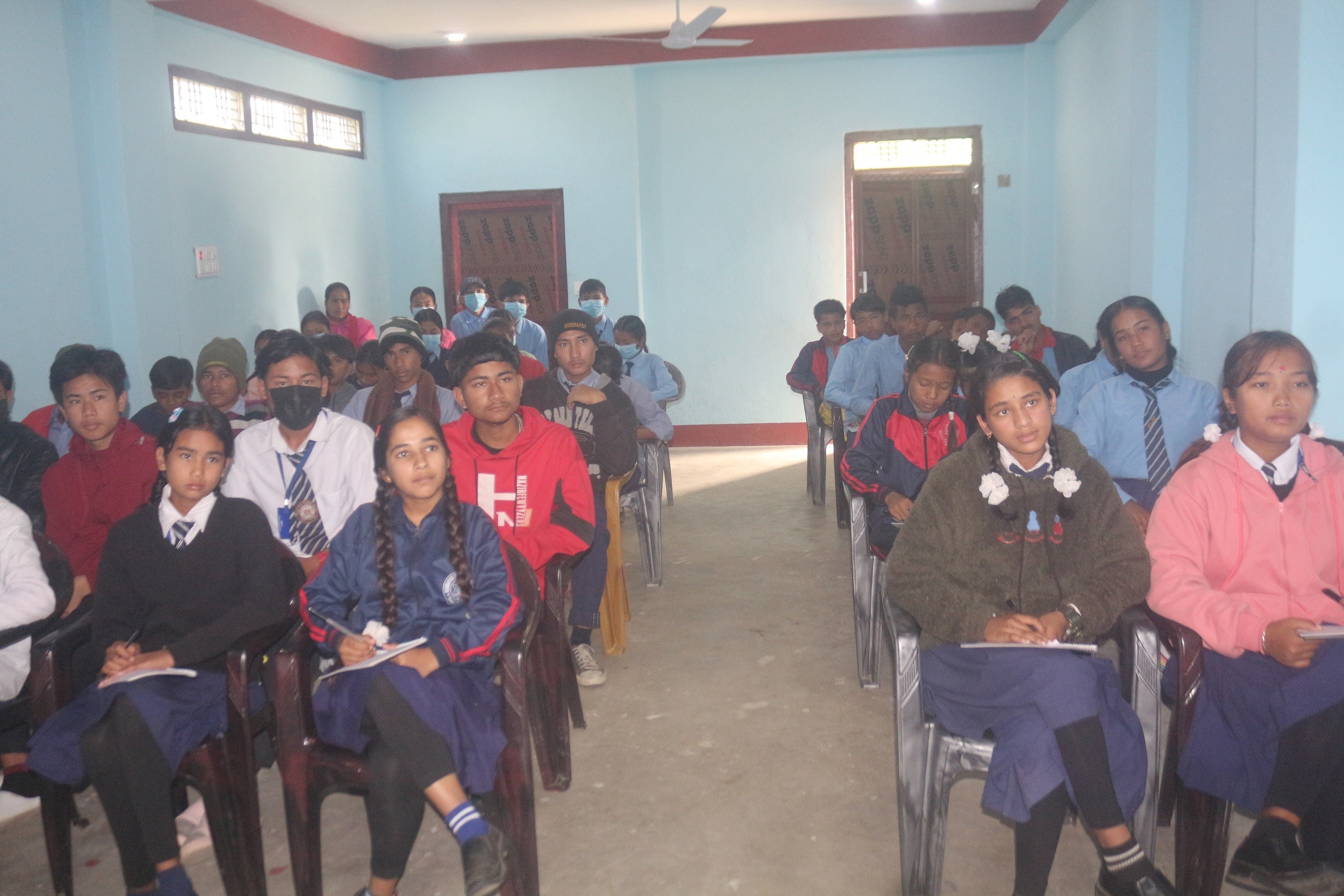 कार्यक्रमका प्रमुख अतिथि तथा गाउ कार्यपालिका सदस्य शुसिला थापाले बिधार्थी जिवन भनेको जिवनउपयोगी कुराहरु सिक्ने र आपसमा सिक्ने समय भएकाले गलत कार्यहरुको कुनै पनि सिको गर्न नहुने बताउनु भयो। किशोर किशोरी अवस्था भनेको सही कुराको ग्रहण र गलत कार्यहरु प्रति ध्यान नदिने समय भएकोले जिवन कसरी राम्रो र सुन्दर बनाउन सकिन्छ भन्ने कुराहरुको ज्ञान  आफ्ना अभिभावक तथा शिक्षकहरुबाट सिक्नु पर्ने कार्यपालिका सदस्य थापाले बताउनु भयो।